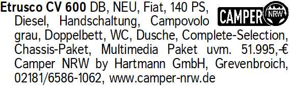 Anzeigentitel: Etrusco CV 600 DB, NEU, Fiat,