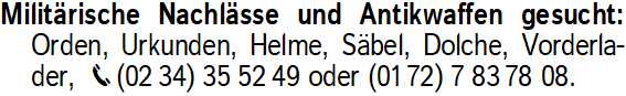 Anzeigentitel: Militärische Nachlässe und Ant