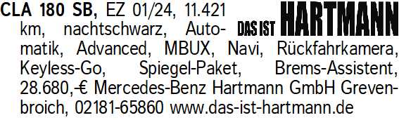 Anzeigentitel: CLA 180 SB, EZ 01/24, 11.421 k