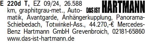 Anzeigentitel: E 220d T, EZ 09/24, 26.588 km,