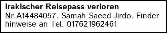 Anzeige vom 8.11.2025 in der Rubrik "Verloren/Gefunden"