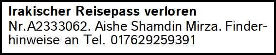 Erscheinungsdatum: Anzeige vom 8.11.2025 in der Rubrik "Verloren/Gefunden"