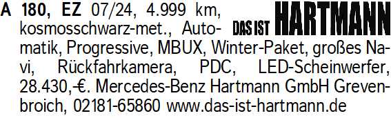 Anzeigentitel: A 180, EZ 07/24, 4.999 km, kos