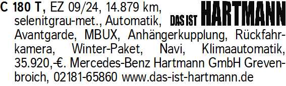 Anzeigentitel: C 180 T, EZ 09/24, 14.879 km,