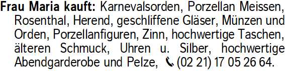 Anzeigentitel: Frau Maria kauft: Karnevalsord