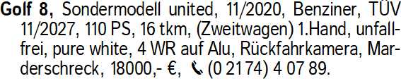 Anzeige vom 8.11.2025 in der Rubrik "Volkswagen"