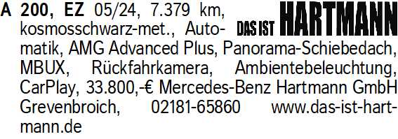 Anzeigentitel: A 200, EZ 05/24, 7.379 km, kos