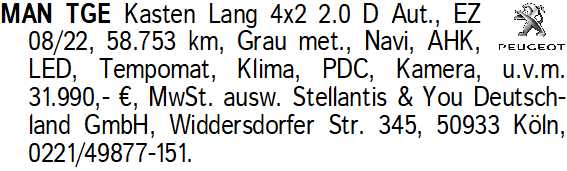 Anzeigentitel: MAN TGE Kasten Lang 4x2 2.0 D