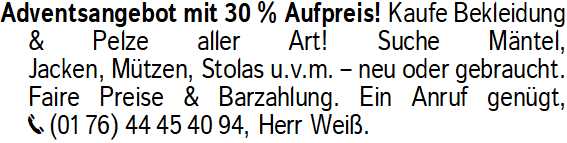 Anzeigentitel: Adventsangebot mit 30 % Aufpre