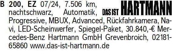 Anzeigentitel: B 200, EZ 07/24, 7.506 km, nac