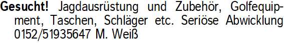 Anzeigentitel: Gesucht! Jagdausrüstung und Zu