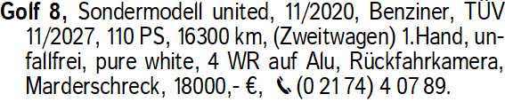 Anzeigentitel: Golf 8, Sondermodell united, 1