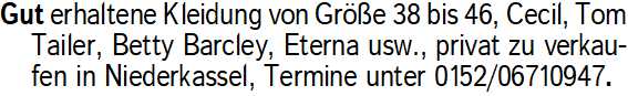 Anzeigentitel: Gut erhaltene Kleidung von Grö