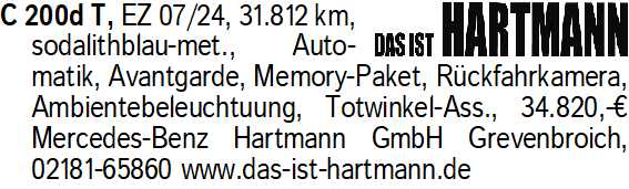 Anzeigentitel: C 200d T, EZ 07/24, 31.812 km,