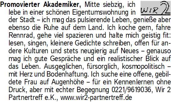 Anzeigentitel: Promovierter Akademiker, Mitte