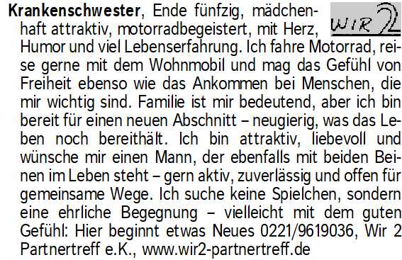 Anzeige vom 22.11.2025 in der Rubrik "Sie sucht Ihn"