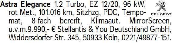 Anzeige vom 22.11.2025 in der Rubrik "Opel"