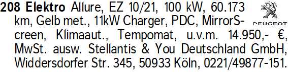 Anzeigentitel: 208 Elektro Allure, EZ 10/21,