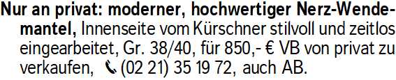 Anzeige vom 22.11.2025 in der Rubrik "Bekleidung"