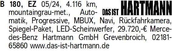 Anzeigentitel: B 180, EZ 05/24, 4.116 km, mou