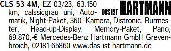 Anzeigentitel: CLS 53 4M, EZ 03/23, 63.150 km