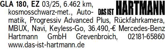 Anzeigentitel: GLA 180, EZ 03/25, 6.462 km, k