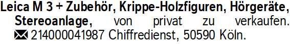 Anzeigentitel: Leica M 3 + Zubehör, Krippe-Ho