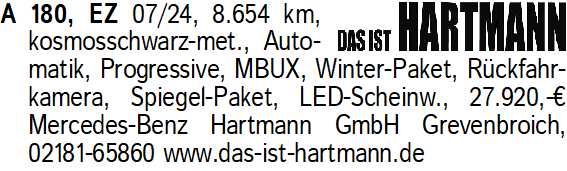 Anzeigentitel: A 180, EZ 07/24, 8.654 km, kos