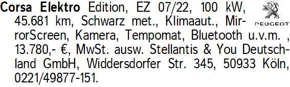 Anzeigentitel: Corsa Elektro Edition, EZ 07/2
