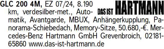 Anzeigentitel: GLC 200 4M, EZ 07/24, 8.190 km