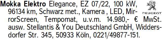 Anzeigentitel: Mokka Elektro Elegance, EZ 07/