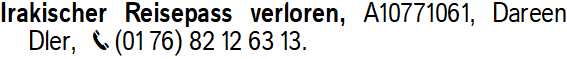 Anzeige vom 13.12.2025 in der Rubrik "Verloren/Gefunden"