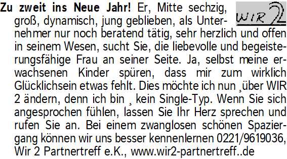 Anzeigentitel: Zu zweit ins Neue Jahr! Er, Mi