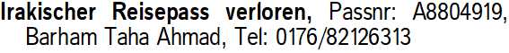 Anzeigentitel: Irakischer Reisepass verloren,