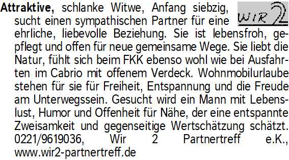 Anzeigentitel: Attraktive, schlanke Witwe, An