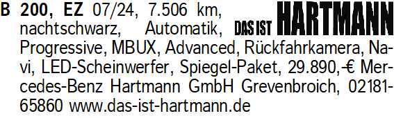 Anzeigentitel: B 200, EZ 07/24, 7.506 km, nac