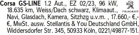 Anzeigentitel: Corsa GS-LINE 1.2 Aut., EZ 02/