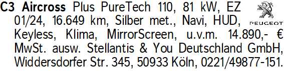Erscheinungsdatum: Anzeige vom 3.1.2026 in der Rubrik "Citroen"