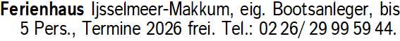Anzeigentitel: Ferienhaus Ijsselmeer-Makkum,