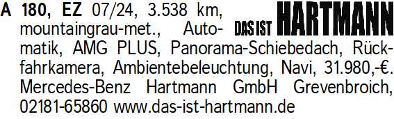 Anzeigentitel: A 180, EZ 07/24, 3.538 km, mou