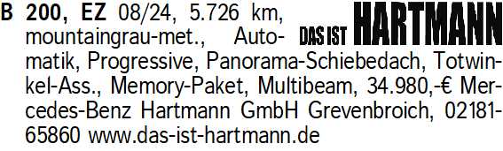 Anzeigentitel: B 200, EZ 08/24, 5.726 km, mou
