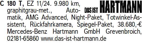 Anzeigentitel: C 180 T, EZ 11/24. 9.980 km, g
