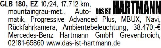 Anzeigentitel: GLB 180, EZ 10/24, 17.712 km,