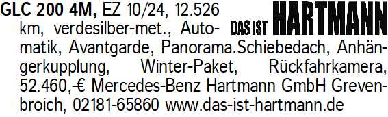 Anzeigentitel: GLC 200 4M, EZ 10/24, 12.526 k