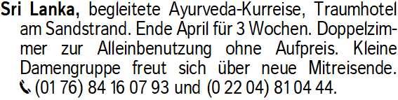 Anzeigentitel: Sri Lanka, begleitete Ayurveda
