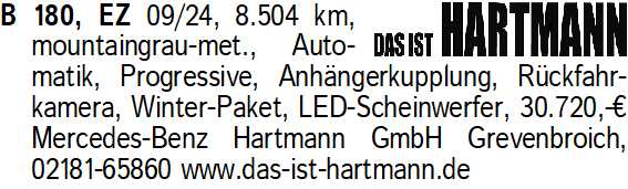 Anzeigentitel: B 180, EZ 09/24, 8.504 km, mou