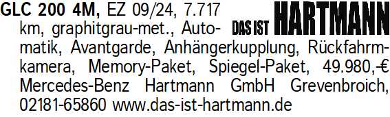 Anzeigentitel: GLC 200 4M, EZ 09/24, 7.717 km