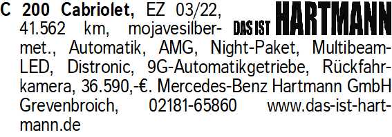 Anzeigentitel: C 200 Cabriolet, EZ 03/22, 41.