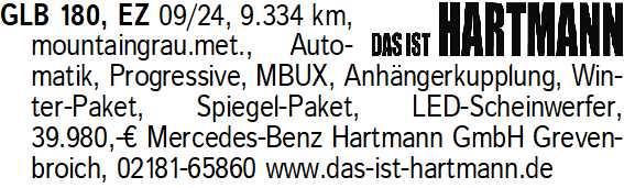 Anzeigentitel: GLB 180, EZ 09/24, 9.334 km, m