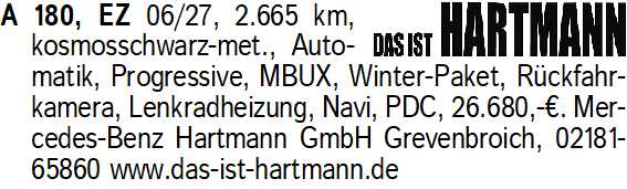 Anzeigentitel: A 180, EZ 06/27, 2.665 km, kos